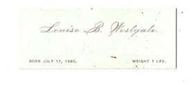 Ah ha – a mystery to solve… who was Louise B. Westgate, born in 1890 at 7 pounds, and why was her birth announcement in the trunk?